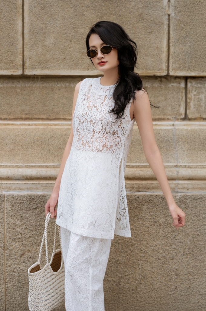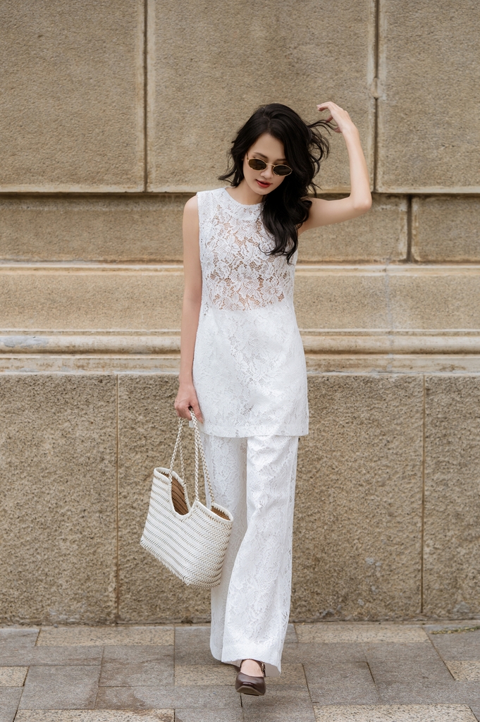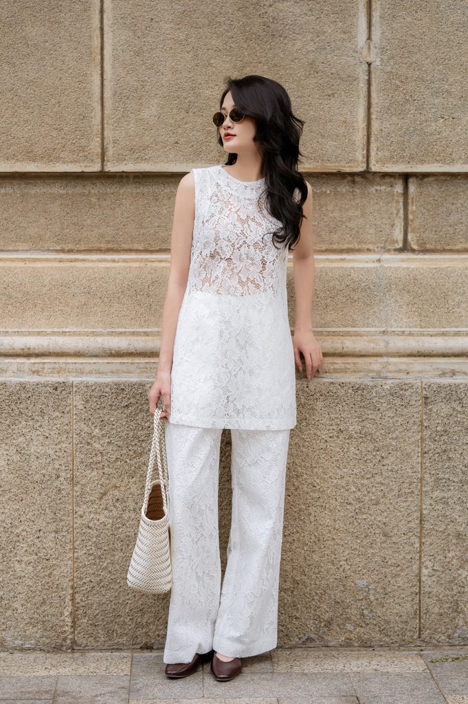 Set áo kèm quần Rinny gồm áo dáng suông không tay phối cùng quần ống rộng, mang vẻ thanh lịch và hiện đại 🤍 Chất liệu ren Hàn, bề mặt mềm mịn, thoáng mát và giữ form tốt. Tông trắng tinh khôi giúp outfit sáng da, dễ mặc nhiều hoàn cảnh từ dạo phố, cafe đến sự kiện nhẹ.