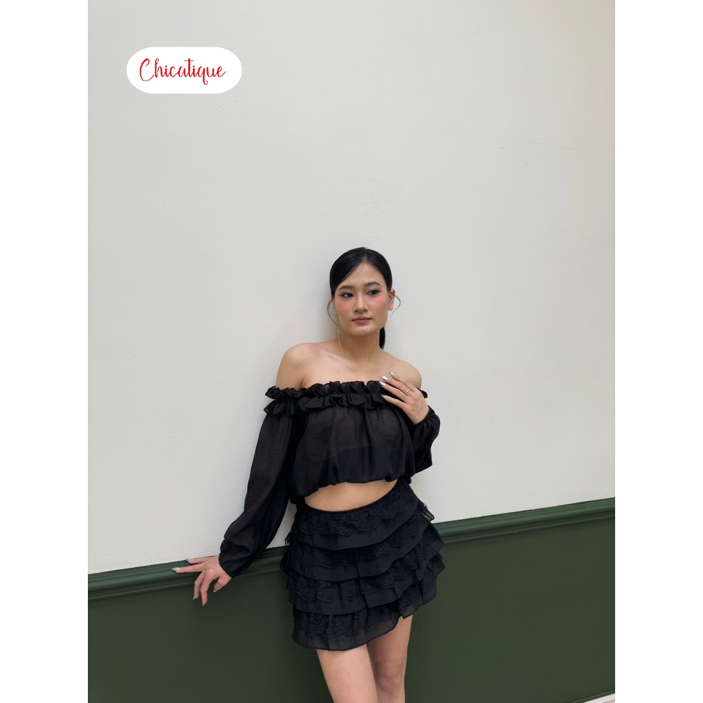 Set áo kiểu trễ vai kèm chân váy Chicatique Vivi tơ giấy mềm mát phối